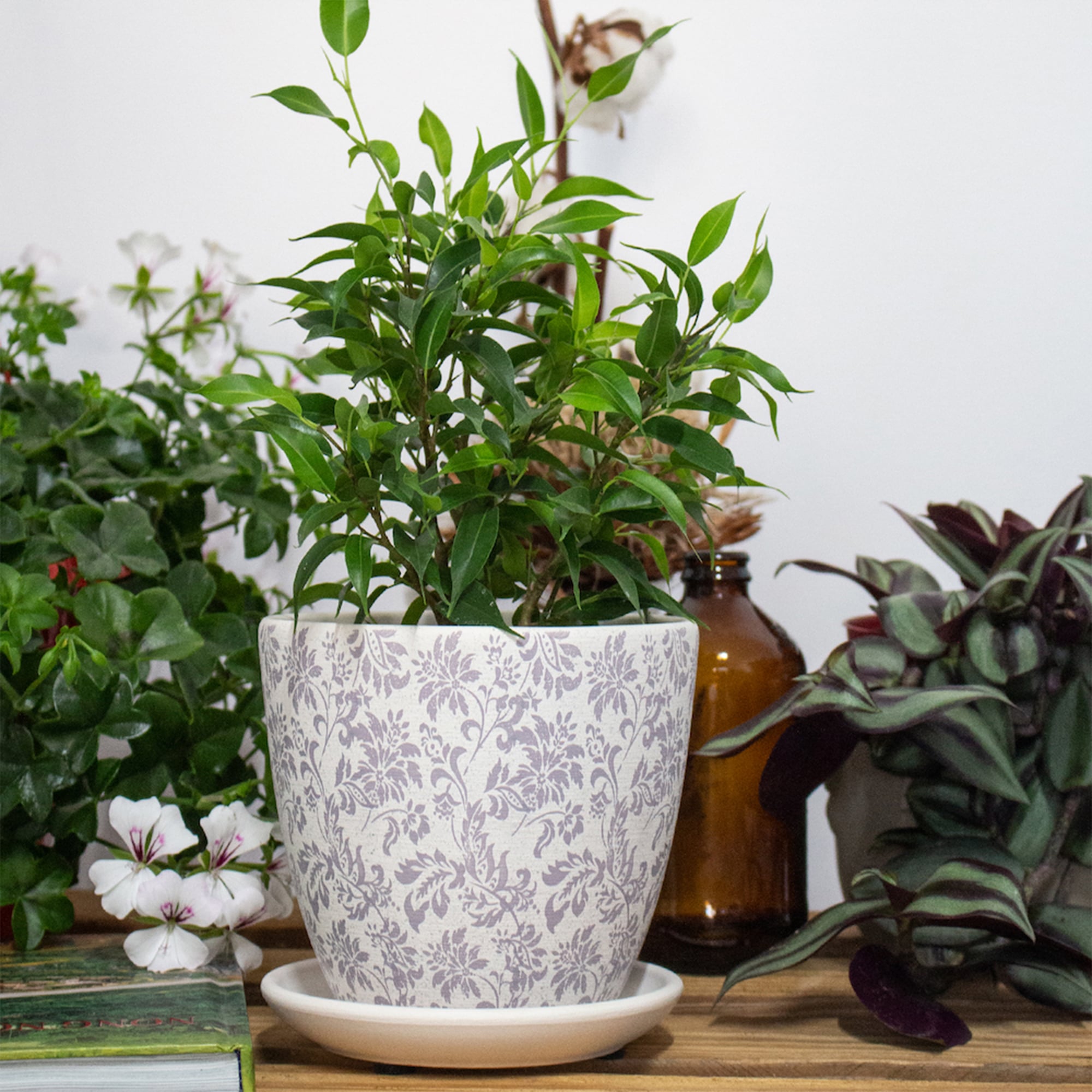 Ghiveci ceramic cu farfurioara Gobelin White Crocus