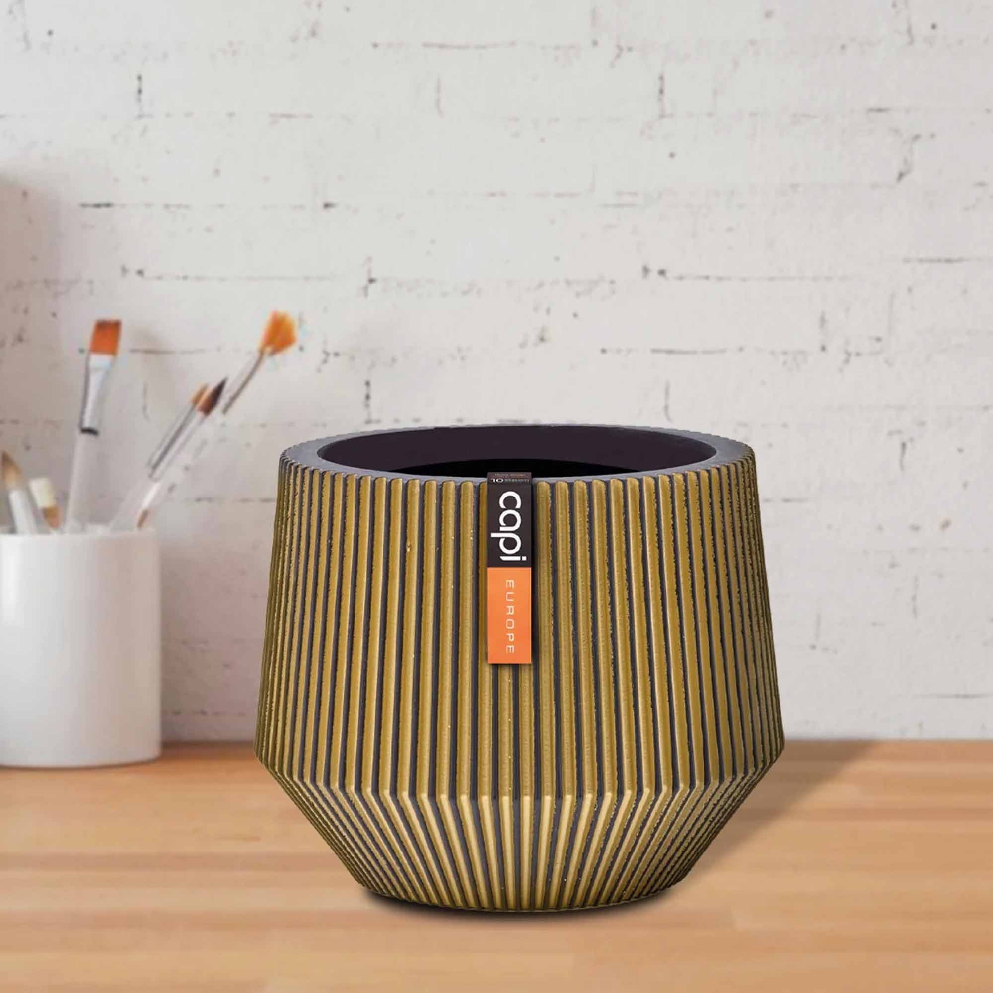 Vase cylinder geo Groove 19×16 black gold
