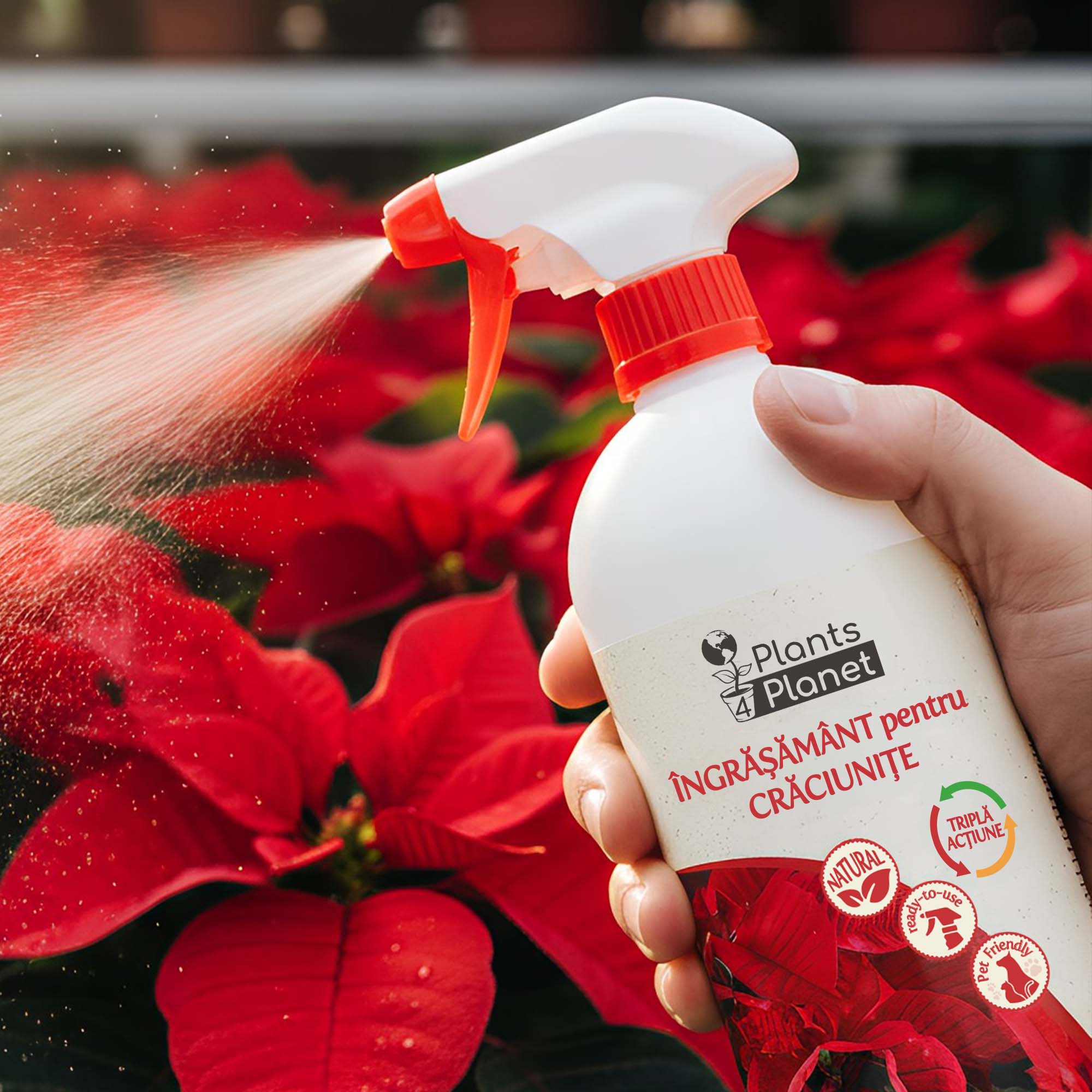 Potrivit atât pentru plante proaspăt cumpărate, cât și pentru Crăciunițe care au nevoie de regenerare, îngrășământul Plants 4 Planet 3-în-1 este alegerea ideală pentru o plantă decorativă viguroasă și spectaculoasă în sezonul sărbătorilor.