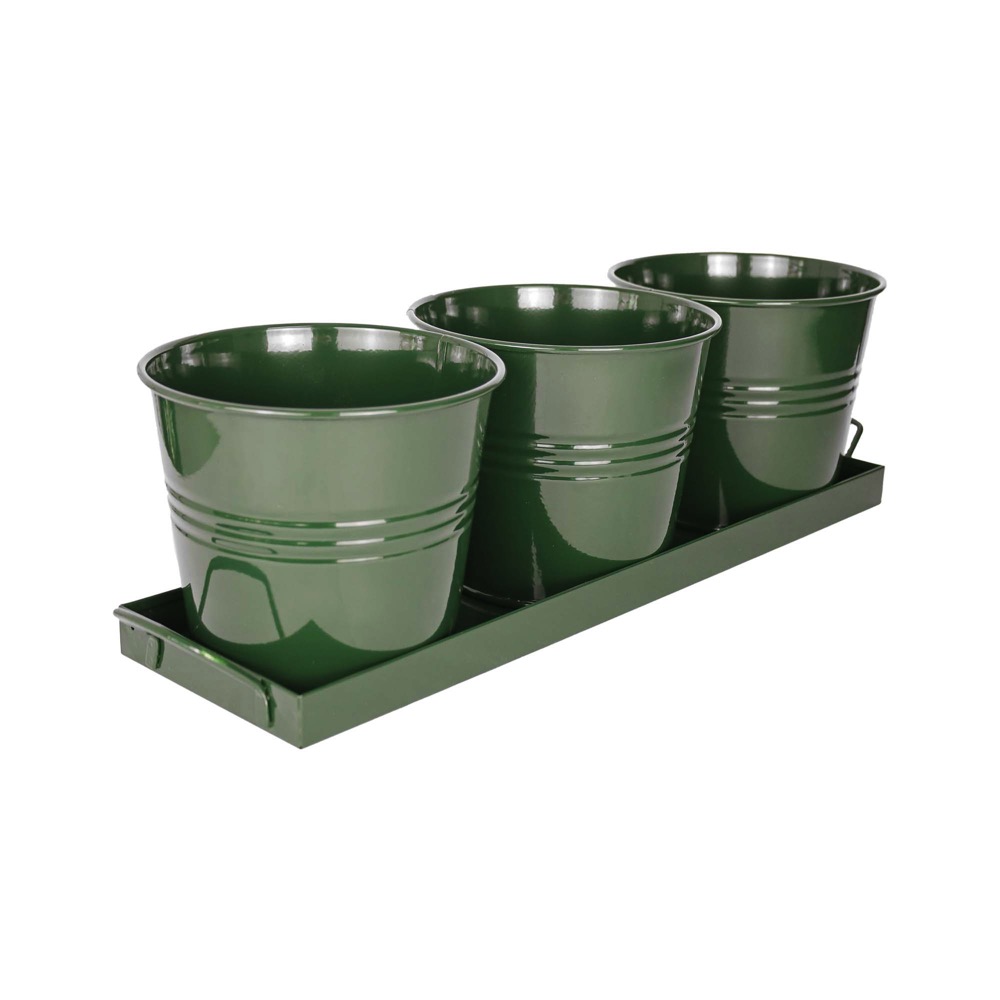 Tavita din metal cu 3 ghivecele Mary’s Garden Supplies, 52 cm, culoarea verde